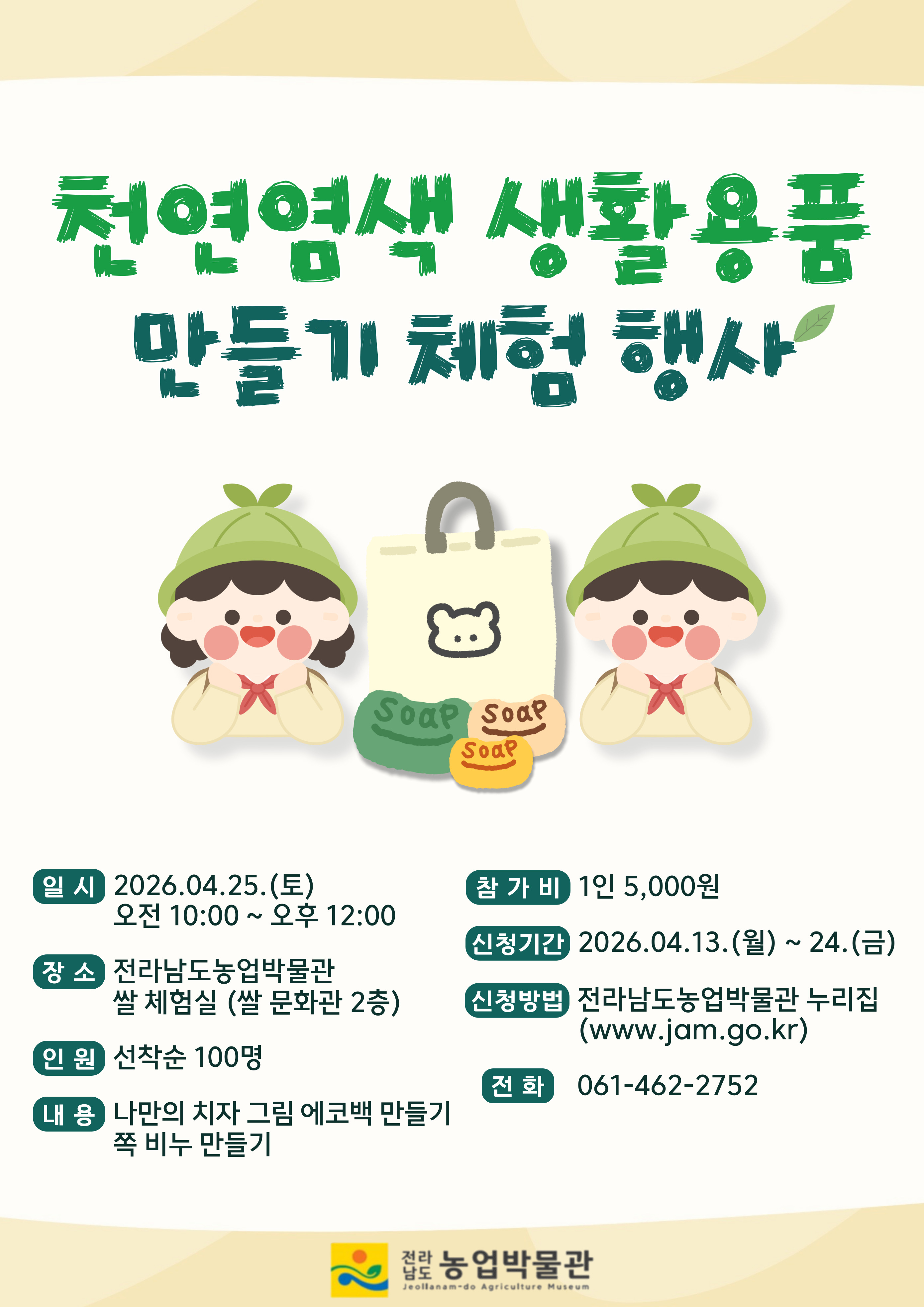 2026년 천연염색 생활용품 만들기 체험 행사 안내