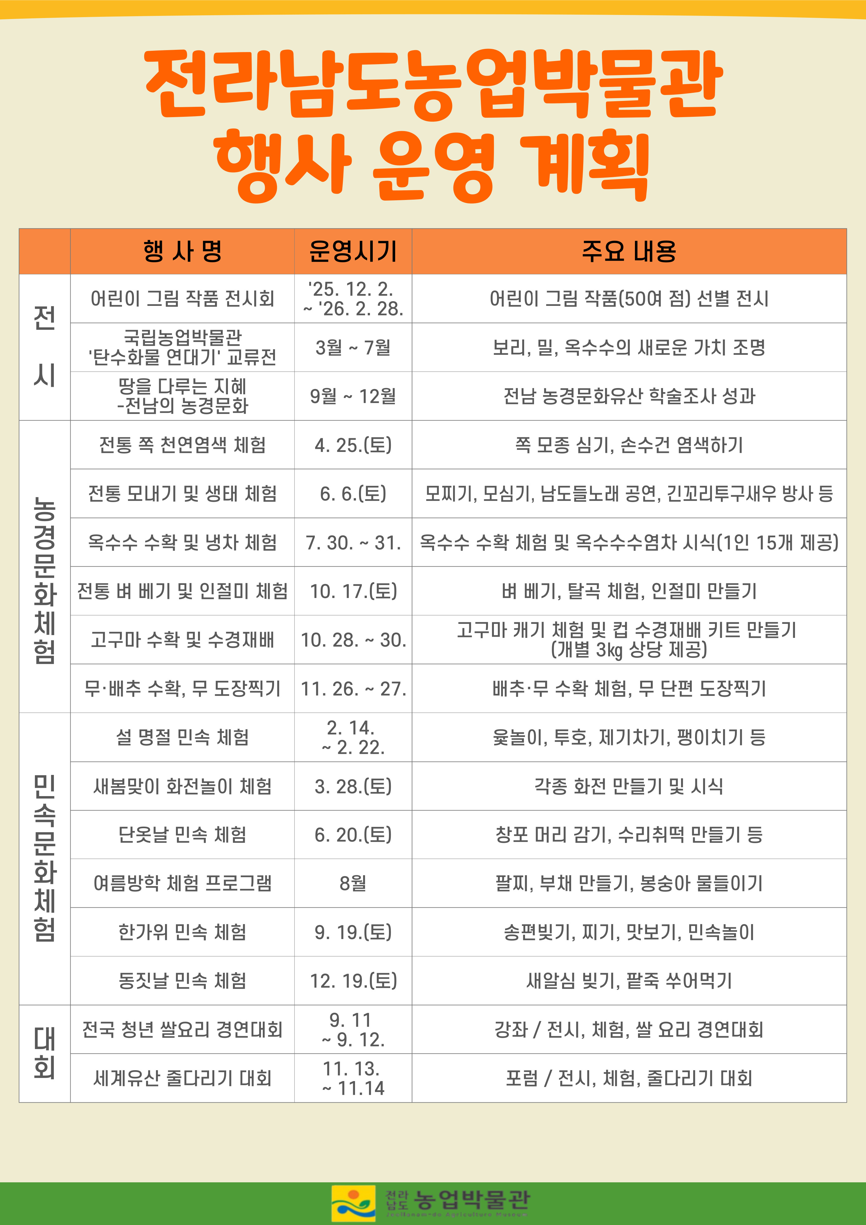 전라남도농업박물관, 국립민속박물관 2026 협력망 지원사업 선정